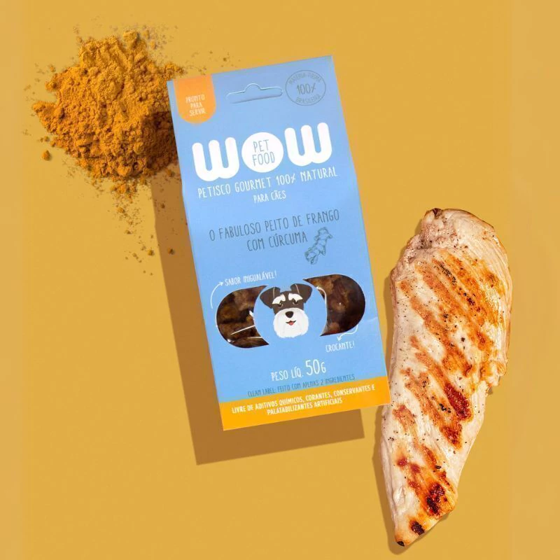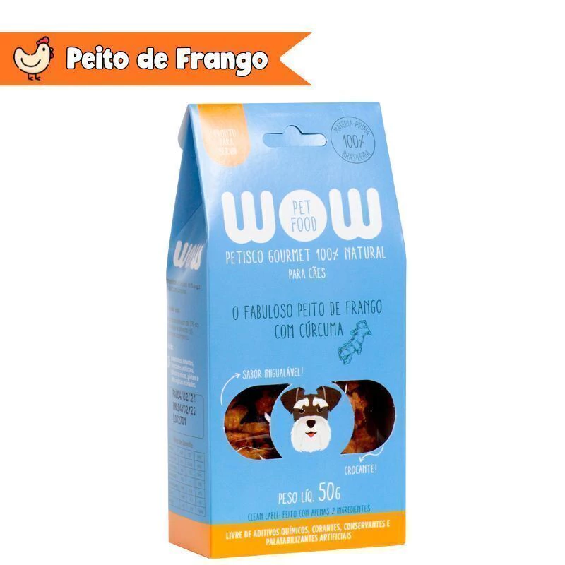 Petisco Natural Gourmet Para Cães - Filé de Peito de Frango Desidratado com Cúrcuma O nosso petisco natural faz muito sucesso mesmo entre os cachorros mais exigentes! Feito apenas com Filé de Peito de Frango Desidratado e cúrcuma, é um petisco saudável superpremium e não possui absolutamente nenhum corante, conservante ou palatabilizante artificial. É tudo comida de verdade! Todos os ingredientes são próprios para consumo humano, dos mesmos fornecedores de restaurantes e supermercados, ou seja, realmente utilizamos o que há de melhor! Além disso, passam por um processo desenvolvido pela WOW para que cheguem até vocês sempre fresquinhos, deliciosos e crocantes! Tudo para favorecer a alimentação saudável e dieta equilibrada do seu cão! Os petiscos desidratados podem ser usados no enriquecimento ambiental ou oferecidos como recompensa na hora do treino ou adestramento. A cúrcuma pode trazer vários benefícios aos cachorros, pois possui propriedades anti-inflamatórias e antioxidantes. |